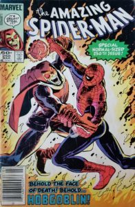 As someone who has years of experience when it comes to digging around in quarter bins at comic book shops, believe me when I tell you that you don’t often find copies of The Amazing Spider-Man, regardless of the year of publication. When I see them, I typically buy them, whether I already own the issue of not (they make great gifts for like-minded friends and relatives). My favorite period of collecting the title are any issues from the beginning up to #200, but if I bought nothing but those issues, there are lots of cool stories I would have missed out on, such as this SPECIAL NORMAL-SIZED 250TH ISSUE (it says it right there on the cover!). Also, I’m more of a Green Goblin guy, but in a pinch, Hobgoblin is good enough for Gosneys (see, Spider-Man comics and the Gosney family motto go hand-in-hand). I didn’t buy comics off the shelf often in the Eighties, and I love adding missing issues to my Amazing Spider-Man run as much as the next web-head fan. We have the following creators to thank for this issue: Roger Stern (writer); John Romita Jr. & Klaus Janson (artists); Joe Rosen (letters); C. Scheele (colorist); and Danny Fingeroth (editor). The cover price of The Amazing Spider-Man #250 is 60¢, while the current values are $16 on CBR and $20 on ZKC.