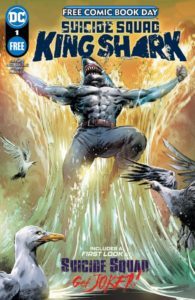 No, I haven’t seen the new Suicide Squad movie (yet), and yes, King Shark looks pretty cool on this cover. Alas, I once owned the first appearance of this toothy anti-hero, but I ended up selling it in a garage sale of gigantic proportions…and now many of those comics I sold that weekend are worth way more than what I got for them. But that’s life, isn’t it? You win some, you lose some. Still, I now own this nifty Free Comic Book Day (FCBD) issue, and the price was more than right! This freebie came with two stories that will leave you wanting more, more, and even more! Suicide Squad: King Shark is brought to us by Tim Seeley (writer), Scott Kolins (artist), John Kalisz (colors), Wes Abbott (letters), Trevor Hairsine (cover), and Michael McCalister (editor). The second tale is a preview of Suicide Squad: Get Joker, featuring the creative talents of Brian Azzarello (writer), Alex Maleev (artist), Matt Hollingsworth (colorist), Jared Fletcher (letterer), Bixie Matheiu (assistant editor), and Mike Cotton (editor). The cover price of Suicide Squad Special Edition #1 is free, while the current value is $0. The Key Collector Comics value is $0.