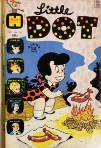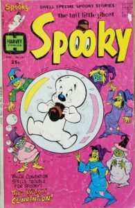 Do Tuff Little Ghosts get as much love as Friendly Ghosts? I would think not, considering how popular Casper has always been over the years, along with all the merchandising deals he’s gotten from beyond the grave. But that doesn’t mean there isn’t room in our hearts for a different sort of comic book ghost. Perhaps Spooky just needs a better publicity manager…though this comic book series had a nice run of 161 issues from 1955 to 1980. My copy of this comic book looks pretty beaten up, which could translate into a comic book that went through multiple readings…or it could mean that it got tossed aside and banged around over the years. I’ll never know the story behind the previous owner or owners, but I was able to rescue it from a quarter box, and now it’s being treated much better. It’s a fun looking cover (especially if you enjoy the friendlier aspects of Halloween), which leads into the first story called The Witches’ Convention, where Spooky really has his hands full! We also get a story with Casper, and finish up the issue with Wendy, the Good Little Witch. Unfortunately, I was unable to find creator credits for this comic book. The cover price of Spooky #147 is 25¢, while the current values are $9 on CBR and $10 on ZKC.