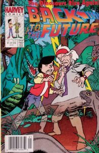 I think just about everyone I knew saw the movie Back to the Future when it came out in 1985. It was a blend of fun science fiction, rock-and-roll, and great music, and it captured the hearts of so many people that a couple sequels followed, along with a cartoon, and some comic books. Well, I saw the sequels, but not the cartoons. And I never read any of the comic books until this issue, which someone gave to me (always a great way to build your collection). And while I’m a couple years older than the intended audience for this comic book (okay, stop laughing), I still got a bit of a kick out of it, despite the corniness. But what we need to remember is that with a franchise like this one that repeatedly gains new fans as those much younger than us discover the fun, this new generation just may look for more things Back to the Future, and decide they need the comic books. So maybe the value of this issue will someday skyrocket! Okay, it won’t, but at least I felt young at heart while reading it. The creators for this comic include some familiar names: Dwayne McDuffie (writer – based on a TV script by Earl Kress), Nelson Dewey (penciler/inker/coloring), and Gil Kane (cover artist). The cover price of Back to the Future #2 is $1.25, while the current value is $3.