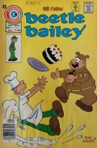 There are seven complete shorts in this issue, along with a two-page written story that has a few illustrations. Judging by the length, I’m guessing that all of these (with the exception of the non-comic story) appeared in newspapers across the country before being collected in this comic book. Maybe all the Beetle Bailey issues contain nothing new, just Sunday Funny reprints, but I don’t know for sure (if you have the answer, we’d be happy to read about it in our comments section at the end of the blog). Regardless, I started reading the strips each week as a kid, so it’s fun to get these comics when I find them in quarter bins. And if you’re worried about whether Sarge catches that cake, your guess is as good as mine, because there is nothing about it inside the issue. The stories are simple and goofy, and some kids of a certain age may get a kick out of them like I did. By the way, if your name is Mark, this may be the comic your mom tossed in the garbage that you’ve been searching for (see the top of the cover image). The cover price of Beetle Bailey #117 is 30¢, while the current value is $10. The OPG value is also $10.