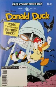 While I enjoy getting to sample so many different comics, creators, and companies during Free Comic Book Day (FCBD), it’s always a pleasure to read stories featuring familiar friends. Over the last couple years, I’ve become a fan of Donald, his nephews, and his rich, eccentric uncle, so the experience of reading this comic was a little more enjoyable than the usual FCBD issues. Often in his stories, Donald comes across as successful at whatever job he currently holds, then disaster strikes. This time, our favorite Disney duck is working in pest removal, and things seem to be going quite well. But when artist Roger Lotsagall hires Donald to take care of the bats in his belfry, will our heroic duck at last prove his worth? This issue comes with three fun stories, including the comic book debut of Donald’s cousin, Fethry Duck. It’s a great issue for any age! The cover price of Disney Masters: Donald Duck is free, while the current value is $1. The Key Collector Comics value is $4.