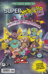 Creator Yehudi Mercado is passionate about doing comics, and while these stories aren’t aimed towards me, I appreciate the enthusiasm. This Free Comic Book Day (FCBD) issue contains a couple introductions to longer stories to get you interested, a one-page “Finish the rhyme” in a panel, and a two-page “Comics Chat” interview with Yehudi. I’ve said this before, and it bears repeating: FCBD is a great way to learn about other comics, creators, and companies. Older kids to teens are probably the target audience for this one, but it didn’t bother me to spend some time reading it, checking out the art, and learning a little about the creator and his desire to entertain. The cover price of Super Mercado Mix Tape is free, while the current value is $1.