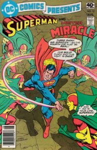 I’m a big fan of anthology style titles and team-ups, and when I find them in discount bins, they typically end up coming home with me. The best part is when I get them out of quarter boxes (again, I really appreciate that there are still quarter boxes available at some stores, and I know exactly how fortunate I am to have such easy access), because low prices tend to equal more volume bought, which makes the shop owner happy, as well as myself. The first time I ever purchased issues of DC Comics Presents was in 1982, during my freshman year at Ohio State. And yes, I did buy the issue that featured the first appearance of He-Man, but alas, I no longer own it. This issue, which gives us Superman and Mister Miracle in typical hero-versus-hero fashion, came out earlier in the run, but I rarely bought DC titles during this timeframe, so it was a treat to get to read this adventure after all these years. The cover price of DC Comics Presents #12 is 40¢, while the current value is $6. The OPG value is also $6.