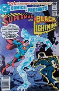 While DC Comics Presents may not get as much love as other capes & tights buddy titles like The Brave and the Bold and Marvel Team-Up, the name alone fills me with nostalgic pangs for my early college years at Ohio State, where a new friend (also named Ed) introduced me back into the wonderful world of comics. Unfortunately, like those days that are now so far in my past, so are those issues (including DC Comics Presents #47, the comic book debut of He-Man), which I sold at a garage sale. Hence, when I go quarter bin diving and see issues of DC Comics Presents, they typically come home with me. This adventure, written by Denny O’Neil and penciled by Joe Staton, pairs Superman with Black Lightning. Beyond the story, I love the ads for the Saturday morning cartoons (by 1979, I was no longer watching them, but seeing what I missed out on makes me wish I could go back in time…for just one day…and watch some of these while munching on a bowl of Freakies) and several other DC comics. Those were the days! The cover price of DC Comics Presents #16 is 40¢, while the current value is $6. The OPG value is also $6.