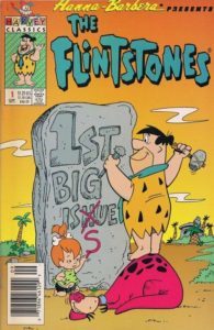 The Flintstones (a modern, stone-age family) have appeared in Cool Comics just twice now. The first time was in episode 25, which was so long ago, some might call it…here it comes…the stone age (okay, I can hear the groans from here…sorry). By the way, if you click the link and visit Cool Comics in March of 2016, you’ll notice that the value of that issue is $28. And now it’s listed at $42. Woo-hoo! Also, if you loved Saturday morning cartoons from way back when, you might get a kick looking at the other comics I featured that week. But now we’re on to a more modern look at Fred and his family and friends, with this first issue from Harvey, under their banner of Harvey Classics. I love the idea that the company published such kid-friendly comics; however, this title and others barely made it three years. The good news is that many comic shops will put titles like this in their discount bins, which is perfect for building up your Cool Comics Kids library. The cover price of The Flintstones #1 is $1.25, while the current value is $4. The OPG value is also $4.
