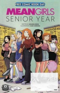 I saw the movie Mean Girls from the comfort of my home (which is how most of us see all movies these days) a long time ago, but I don’t remember anything about it. Possibly my kids wanted to see it, but maybe I did, too. At any rate, this Free Comic Book Day (FCBD) issue did nothing to jolt my mind into remembering anything about the plot or characters. And come to think about it, I read this comic last week and can’t recall much of it now. Which isn’t surprising, as I do a lot of reading and it’s hard to retain everything that I’m not overly excited about. I’m sure that part of the reason is because I’m a far cry from the intended audience of this comic book. The cover has “TEEN” written in the bottom right corner, and I’m several decades removed. Additionally, I’d say it’s more appropriate for older teens, considering some of the content, but maybe that’s just me. If you’re a fan of the movie(s), you may want to add this to your collection. The cover price of Mean Girls: Senior Year is free, while the current value is $1.