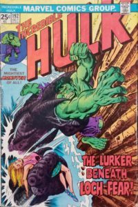 Anytime I can find Seventies comic goodness while quarter bin diving, it’s a good day. However, the condition of this issue of The Incredible Hulk is nothing to write home about, and yet, it cost just a quarter, and came out less than a year after one of the most famous of all issues of this series. But no, Wolverine doesn’t show up in this one. So, who does show up? Seems like “The Lurker Beneath Loch Fear!” could be Nessie’s cousin…if you’re wont to believe such things exist. I’m not saying they do, and I’m not saying they don’t, but just the possibilities of such cryptids keep things interesting, don’t they? Regardless, the Hulk exists, at least between the pages of fun presented to us from Len Wein, Herb Trimpe, and Joe Staton. The current Immortal Hulk series is one of the best you can read today, but nothing satisfies like going back to my childhood with a comic like this one. The cover price of The Incredible Hulk #192 is 25¢, while the current value is $20.