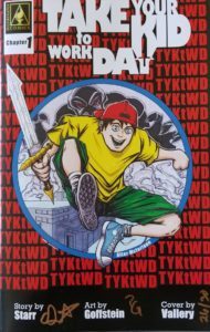 Many moons before Dr. Omnibus became part of Cool Comics, I didn’t know much about his alter ego, Damian Starr. He was just a guy in some comic groups I belonged to, and he’d joined our Cool Comics Facebook group, also. I believe it was there that I first saw a posting for the Take Your Kid to Work Day Kickstarter. Over the past couple years, I’ve become a fan of the form, and especially like to support them if I have a connection to any of the creators. And for this one, not only was I Facebook friends with the writer (Damian Starr), but also with one of the variant cover artists, Cary Vallery, an extremely talented artist (be sure to check out his Kidferlife Collectibles page). Cary’s cover (pictured here…and if you click on it you can see the signatures and cover numbering on this Amazing Spider-Man #300 homage) was limited to just 30 copies, and I knew I wanted to get it as soon as I saw it. If you’re wondering if the story is any good, I certainly think so. Starr and artist Peter Goffstein give us a poignant, compelling story not only about a kid from a broken home, but also explore science gone wrong in ways that have me chomping at the bit to read Chapter 2! I’m guessing that the good people at Illuminatus Comics still have some copies available if you’re interested in giving this great story a try. The cover price of Take Your Kid to Work Day Chapter 1 is $4 for digital, $7 for a paper copy, and $20 for the variant cover I purchased.