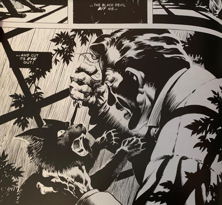 This one is a bit zany, but another highlight was the script and lettering for Vermin. I was instantly able to place a voice to this character. Not only was I able to “create” this voice in my head, but I can identify it as well. He sounds just like Gollum from The Lord of the Rings. This may seem like a small thing, but by having been able to create this voice without an extraordinary amount of mental effort, I was able to remain in the moment more completely than If I had to decide how this guy sounds.