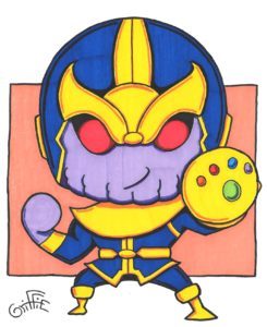 This episode we showcase another fantastic piece of art by Ed Griffie, a lifelong comic book fan who started drawing Kawaii and Chibi style versions of pop culture icons and superheroes about five years ago. Ed’s creation is the Mad Titan Thanos, a Marvel character who probably wasn’t known by many people outside of the comic book community, but now, thanks to the Marvel Cinematic Universe, is familiar to millions of fans. Ed, thanks for letting us share your cool creation!