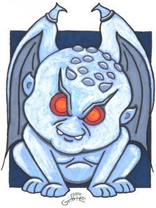 During the Memorial Day weekend, my kids were sitting around the dinner table talking horror movies, and I mentioned how scary it was when my younger sister and I watched the 1972 made-for-TV movie Gargoyles. It’s probably considered hokey by today’s standards, but I’d just turned ten years old, and my sister was a couple years younger, and let me tell you, it was creepy! With that in mind, the cartoon version of Gargoyles, so well-captured here by Ed Griffie, is the perfect piece of art for Cool Comics this week. Ed is a lifelong comic book fan who started drawing Kawaii and Chibi style versions of pop culture icons and superheroes about five years ago. Through Facebook his work came to the attention of Daniel Hare, the owner of vintage toy and comic bookstore The Toys Time Forgot, who offered him a guest spot at Free Comic Book Day. Since then, Ed has been a regular at local conventions and comic bookstores, where he offers bookmarks, coloring pages, trading cards, and color prints featuring his unique artwork. You can check out his full catalog of work at toonist27.deviantart.com or contact him at edgriffiejr@gmail.com to commission an original piece of your very own.