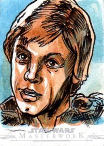 This episode’s creation comes to us from illustrator Dan Gorman, a member of the National Cartoonists Society and one of the top sketch card artists on the planet. This card, featuring Luke Skywalker, is one of the 50 plus sketch cards Dan created for the Topps Star Wars Masterworks 2019 Set. For more about Dan and his art, please visit www.dangormanart.com.