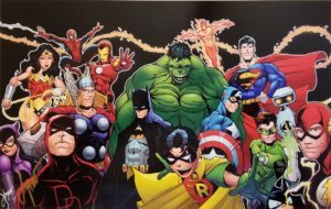 In our last episode, I mentioned that I’d start showing off some of the comics I picked up at Akron Comicon by episode 217 and for several episodes following, and that I’d also show off some cool other stuff I got from the con right here in Cool Comics News. This week I wanted to share an awesome print I bought by artist Rick Lozano. I wasn’t going to purchase it on first glance, but the more I looked at it, the more I decided it would look great in a frame, hanging on my wall. This is an awesome mix of classic heroes from both Marvel and DC, including H.E.R.B.I.E., the Fantastic Four robot!