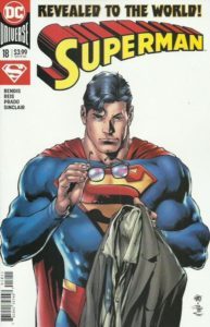 It’s no secret in the comic book universe that the granddaddy of all superheroes, Superman, spills the beans to the world that he’s also Clark Kent, mild mannered reporter. I’ve seen some online chatter that this is it, fans are going to quit buying comic books featuring the Man of Steel, and that this makes for a perfect jumping-off point. All before even having read the issue. Well, I’ve just read it (normally, when I blog about a new comic, it goes in my blog a week and a day after having hit the comic shops, but I decided that since this is hot news—and controversial to some readers—that I wouldn’t wait that long), and I’ll tell you that if you’re going to have a reveal party, writer Brian Michael Bendis and artist Ivan Reis knocked it out of the solar system! They hit all the marks, with early warnings of what’s to come for certain characters (meaning that Clark, for example, tells Perry White who he is before making his big announcement to the world), do a nice job of capturing the emotions of those in Superman’s circle, and even give us a reaction from…well, you may figure out who, but I won’t take this any further. If you’re a “Super” fan, then don’t miss out on this issue. The cover price of Superman #18 is $3.99, while the current value is $4. The Key Collector Comics value is $4.