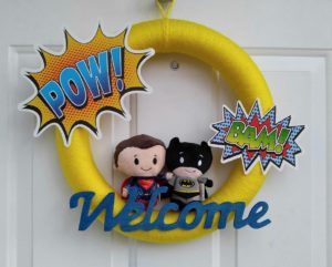 This “World’s Finest” wreath comes to us from Melissa’s Craft Corner (Melissa Gosney…yes, she’s both my wife and a very crafty lady!) and looks so super while hanging on your door! If you are interested in seeing more of her creations, they can be found for sale at Rubber City Comics in downtown Akron, Ohio. See the Cool Comics News section above if you would like to submit one of your creations!