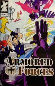 convention attendees at the recent Cleveland Comic & Toy Show, as I heard him talking to so many people over that weekend. I was happy to hear him talk a little about his Christian-themed superhero comic that takes place in downtown Pittsburgh, PA, a fun story done in black and white, with a nicely colored cover (you can see where he signed it on the top left). I grew up in Ohio, but less than an hour from Pittsburgh, so it was fun seeing some familiar scenery. But it wasn’t until later that I discovered that Archie is also a part of our Cool Comics In My Collection Facebook Group. If you see Archie at a convention, make sure to stop by and pay him a visit! The cover price for Armored Forces #1 is $5.