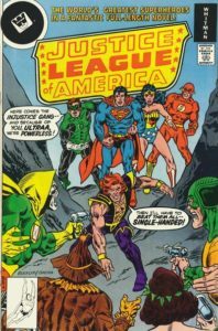 If you’re a fan of superhero teams, you can’t go wrong with the original Justice League of America series. Just look at the heavy hitters on this cover! Green Lantern, Superman, Wonder Woman, and the Flash should have no problem keeping you entertained with some comic book fun and heroism, right? But they’ve really got their hands full in this one, not only because they’re facing The Injustice Gang, but because Ultraa is, well, rendering our heroes powerless. And with that, trouble ensues, and we have to keep turning pages to find out if they can even survive! Gerry Conway wrote this Seventies classic, while Dick Dillon did pencils. You may have noticed that this issue has a Whitman cover, and if you’d like some background as to why, just click here. Guess where I found this issue? In a quarter bin, of course! Who says you can’t get great entertainment on the cheap? The cover price of Justice League of America #158 is…well, the regular DC cover price is 50¢, while the current value is $18.