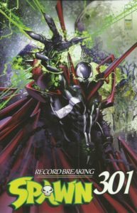 Sometime in 1993, when I entered my third phase of comic book collecting, I found out about Image Comics. I decided I needed to see for myself what this upstart comic book company was all about, so I bought a lot of the early issues of many of the titles, but I stuck with Spawn the longest. I had to search comic shops in the Atlanta area to find the first several issues, since it had started publishing in 1992, but I eventually did, and I read the title up through # 34. I no longer have those issues, and Spawn hasn’t been on my radar for long time. Yet I knew issue #300 had released, and that the next one, #301, would be a record-breaker for a creator-owned title. I still didn’t think I’d pick it up, and when I went to my comic shop last week, they didn’t have any on the shelves. But the day after, I was in another comic shop in downtown Akron, Ohio, because my wife now has some crafts selling at the shop, and we were dropping them off, when one lone Spawn #301 (with a variant cover…there were lots of variant covers) happened to catch my eye. I decided that since it was the only one left, I’d purchase it just to revisit Todd McFarlane’s creation, with no intention of putting it in Cool Comics. Yet after reading it, I knew it belonged, especially so since we’re in the month of October. Spawn is still very much a popular character, and this record-breaking issue is further proof of why. The cover price of Spawn #301 is $4.99, while the current value is $5.