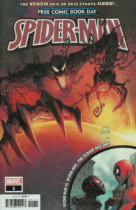 With the start of Absolute Carnage (the first issue came out yesterday…look for it here next week!), I just had to include this Free Comic Book Day issue for episode 202. For Venom and Carnage fans, you’ll want to get your hands on this comic as soon as possible if you haven’t already, since it’s a direct tie-in (it ends with the words, “TO BE CONTINUED IN ABSOLUTE CARNAGE!” so there’s your proof), and who knows what effect this will have on the speculator market. To be honest, while I love Spider-Man, I’m not the biggest fan of the symbiotes, but to each his own. The second story in this freebie gives us a fun little tale with both Spider-Man and Spider-Man getting ready to square off over…pizza? “Friendly Neighborhood Rivalry” is a story more to my liking, and after troubles with the Shocker subside, Miles Morales and Peter Parker get together at the end for even more pizza! The cover price of Spider-Man/Venom is free, while the current values are $4 on CBR and $6 on ZKC.