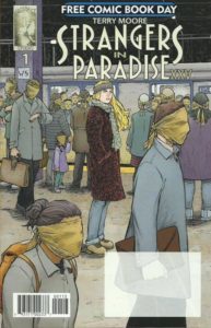 Terry Moore’s black and white comic Strangers In Paradise started publishing in 1993, seemed to be finished in 2007, then started up again in 2018, including this Free Comic Book Day issue, which is also available at the full price of $3.99. Admittedly, this is the first one I’ve ever read, so needless to say I didn’t understand the motives behind the actions all that well. And keep in mind that this is for a more mature audience, so you probably don’t want to be sharing it with the kiddos…and they probably wouldn’t care about it anyway. I can’t say I’ll never read a copy of Strangers In Paradise again (because it may pop up at FCBD once more in the future), but I won’t be looking for any. While it may be for you, it’s not my cup of tea. This was the last “regular” FCBD offering, and next week we close out the 2018 giveaways with a couple books thrown in for specific purposes, so tune in if you want to know what they are. But don’t fret, I’ll be back in a few weeks with FCBD 2019 comics! The cover price of Strangers In Paradise XXV #1 is free, while the current value is $1.