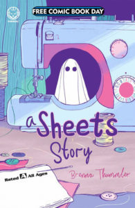Did you happen to read Brenna Thummler’s graphic novel Sheets? If you did, then you’re probably excited to get your hands on this Free Comic Book Day story that takes place afterward. Full disclosure, I didn’t read Sheets. And when I picked up A Sheets Story, I was prepared for boredom. This FCBD edition falls under Lion Forge’s Caracal imprint, which caters to kids from ages 8 to 12, so you can understand why I thought I wouldn’t care. But I did care. Brenna pulled me into this universe she created and wouldn’t let me go. Almost as if she’d tied me up with a…sheet…so that all my focus was on this incredibly moving story. I read a lot of comics, so I can’t make any promises that I’ll ever read the original or the upcoming sequel in 2020 (Delicates), but I’m truly glad I got to experience this one. The cover price of A Sheets Story is free, while the current value is $0.