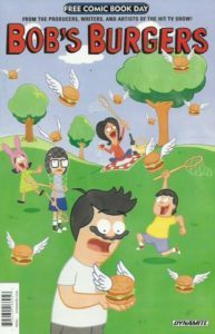 You never know what you’re going to get when it comes to Free Comic Book Day issues, especially when you have the opportunity to read them all, and they contain lots of things you’d never pick up on your own. This is the third issue of Bob’s Burgers from Dynamite for FCBD, not to mention a couple volumes of series they published a few years back. I’ve never read one of these comics before, nor have I watched a single episode of the cartoon. The first story in this comic is an alternate trip on the Titanic aptly called “Tinatanic,” which I admit wasn’t my kind of story. Perhaps you loved it. But the second story was strange enough, odd enough, and bizarre enough that I found myself enjoying this weird tale. It’s titled the “Bizarre Bazaar,” and that made it worth the price of…wait a minute, this was a free comic, right? The last entry is called “Where the Fried Things Are,” and I’m sure you can figure out the motivation for it. I may never read another Bob’s Burgers comic again for the remainder of my days, nor watch an episode on TV, but now I’ve experienced it, and have been forewarned not to put pineapple on my burger. The cover price of Bob’s Burgers is free, while the current value is $1.