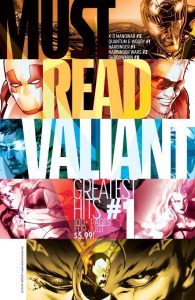After having enjoyed the above Valiant comic book so much, I remembered that there were some Valiant comics in my cheap longbox. I have them arranged by company, so it wasn’t hard at all to find the few Valiant comics in there. And what a stroke of luck that one of the issues is a Harbinger comic from 2012. Yes, Peter Stanchek, one of my new favorite characters, is in this issue, along with Faith, who we see using her powers for the first time! Why did it take me so long to finally read a Valiant comic book? Were the Harbinger comics of the Nineties as good as these two I’ve recently read? One thing I know for sure is that the next time I’m searching through discount boxes, I’m buying all the Valiant comics that I find. The writing is good and easy to understand, and the art is attractive. In Q-Unit I couldn’t always tell what was going on, and it was a number one issue. With these Harbinger comics, even though they were issues #8 and 5, they both made sense. By the way, for those who keep score, the cover I got in my cheap box is a variant David Aja Character Design Cover. The cover price of Harbinger #5 is $3.99, while the current value is $4.