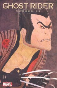What? I thought this was a Ghost Rider comic? It says so on the cover, yet there’s a drawing of Wolverine. After a little checking on the Internet, I found out that in 2009 there was a Wolverine Art Appreciation month, and this is certainly one of those covers. So, what do you readers think? Do you like it when your comic book has an image of a different hero on the cover? It’s fun that this cover gives it a higher value (at least among collectors who appreciate this sort of thing…I was tempted to use the word “gimmick,” but to each his own…I try not to be too negative, because as the old adage goes, “One mans trash is another man’s treasure”), yet it looks kind of awkward, doesn’t it? You buy an issue of Ghost Rider, and instead of a flaming skull, you get Logan’s Flock of Seagulls haircut. But not to worry, the inside does indeed contain a Ghost Rider story, and an action-packed one at that. The cover price of Ghost Rider #34 is $2.99, while the current value of this variant cover is $12.