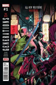 My son really wanted me to watch the movie Logan with him this summer, as I hadn’t seen it. And here we go again with the perfect timing! From the previews I’d seen of the motion picture, I knew there was some young girl who has claws—yet not quite the same—similar to Wolverine’s, and is a vicious fighter. But that’s all I knew. Well, her name is Laura, and though quite young in the movie, she’s older in this Generations issue. I’m not going to say anything more here about her, because there could be someone else left in the world who hasn’t seen the movie. And if you haven’t been reading Wolverine comics that have Laura in them, but you want to read this comic, I’d suggest watching the Logan movie first. It worked well for me! Wolverine fans, I used to be (those words hurt…used to be…) the proud owner of the original Wolverine mini-series that came out in 1982. It’s a must-have for those who love the character, but most unfortunately, I sold all four issues. Why? Don’t even ask. Because I don’t want to think about it. The cover price of Generations: Wolverine & All-New Wolverine #1 is $4.99, while the current value is $5.
