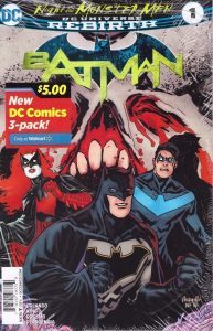 DC loves to promote the caped crusader, and I understand why so many of the Walmart 3-Packs contain Batman issues. But for the life of me, why would they do the variants from Rebirth out of order? Granted, most comics have short arcs that contain a certain amount of issues, and these variants are a great promotional gimmick to get new readers, but at the same time, we aren’t stupid, and we like to read our comics as sequentially as possible. So what in the world am I talking about? In a previously released batch of Walmart DC 3-Packs, one of the Rebirth variants packed on top was Batman #9 (although they’ve been renumbering them all as #1). This story, Night of the Monster Men, was really issue #7. Why? I don’t know if anyone has the answer, but if I could ask the marketing people at DC behind these decisions, that’s what I’d ask. At any rate, this contained some Bat people I’m not familiar with, and a big-headed, strange enemy who may just pop up in one of my nightmares sometime. It was pretty gross. The cover price of Batman #7 is $2.99, while the current value of this variant is $5.