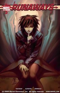 Runaways started back in the summer of 2003, just a few months before my third phase of collecting came to an end, so I didn’t bother with this new title (Argh! It’s currently valued at $60, so why didn’t I buy it then?). And now that these kids are about to have a streaming series on Hulu (November 21), I thought it was time to find out what the comic is all about. Especially since I was able to get the first issue free via comiXology, which is always a good thing. Runaways features a bunch of kids from different families whose parents get together annually and meet in secret while their kids hang out together. They don’t know each other well, because it’s only once a year. But this time, they decide to find out what the parents are actually doing, and they go through a secret room, look through a two-way mirror, and their lives will never be the same again! Brian K. Vaughan (Y-The Last Man) is the writer, and he certainly has a way of making the buildup to the big reveal keep your interest, despite the fact that not much goes on until the dramatic finale. And yes, after what the kids witness, the title of the comic makes sense.