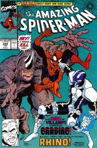 I think this issue of The Amazing Spider-Man is the newest comic I’ve ever put in the category of Cool Comics Classics. Seriously, 1991 doesn’t seem that distant, does it? It’s almost shocking to think this came out over 26 years ago. I had it stored away with other back issues and recently, when I took it out to read, I discovered that it’s the first appearance of Cletus Kasady, who later becomes Carnage. And even though I’m not a fan of that villain, I like the idea that I have this issue. We also see the first appearance of Cardiac, and Spidey’s old pal Rhino is thrown in just for kicks. And his kicks hurt…a lot! I bought this, along with a handful of other Spider-Man comics, in the mid-Nineties when I’d started my third phase of comic book collecting, and wanted to catch up on Peter Parker and his friends. Sometimes we have small treasures sitting around and we don’t even realize it. Not that this is worth hundreds of dollars, but it does have a little comic book historical significance. The cover price of The Amazing Spider-Man #344 is $1, while the current value is $30.