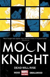 Moon Knight Vol. 2: Dead Will Rise, covers issues 7-12 of the 7th series of Moon Knight, which came out from November 2015 to April 2015. There is a creative team change with this arc. Warren Ellis handed over the writing chores to Brian Wood, and Greg Smallwood took over the art from Declan Shalvey. One of the best things about these digital collections is that the pricing is typically more affordable than buying individual issues, whether they be paper or digital. Unless of course you can find them in cheap back issue boxes at your local comic shop, and typically it takes some work to dig through and find every issue you’re looking for (these days many shops have sale boxes ranging from 25 cents to $1). Moon Knight is such an enigmatic hero, often using tactics other heroes would never dream of. He has several aliases and personalities, and even his local law enforcement contact is unsure of him. And that’s all part of what makes him such an interesting character. While I liked Volume 1 better than Volume 2, I’m glad I read it, and look forward to the final chapter of this series.