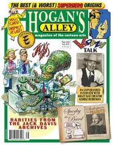 When I started collecting comics for the third time, in the early Nineties, Wizard Magazine and a few others were easily accessible for those who wanted more than just comics. While they are long gone, I just discovered the magazine Hogan’s Alley, which had its debut in 1994. Though it started off as a quarterly, it now comes out annually, and I found issue No. 21 at my local Barnes and Noble this week. This isn’t a typical comic book magazine, as it also covers comic strips and a mishmash of other items, all having to do with cartoon arts. If you like the art form and the history behind it, then Hogan’s Alley is worth the $6.95 cover price. You get over 140 pages (newsprint style rather than slick, which is just fine for an older fan like me), so you’ll be able to enjoy it for a while. I haven’t gotten very far into it yet, but I can tell this will be something I pick up every year.