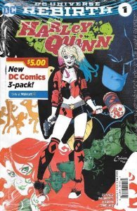 I’ve always been a fan who likes heroes. When Spider-Man fights the Green Goblin, I want the good guy in the insect costume to win. When John Wayne goes after bad men, you know he’ll get justice. But as the years pass (too swiftly!), I’m starting to enjoy a “good” bad guy every now and then (I guess that’s why I wanted to be in the Supervillain anthology, World Domination, which comes out June 26 via Amazon). I wasn’t sure what I’d think of the Suicide Squad movie, but I liked it, and Harley Quinn turned out to be one of my favorites. There’s just something deliciously entertaining about a funny supervillain (If you’ve read my novel Prometheus Stumbles, then you’re familiar with the crazy antics of Fred Wichman…a character I grew to love so much that I’ve been writing stories about Fred when he was younger), and I’m glad that DC packed another Walmart 3-pack with this Variant Harley Quinn Rebirth issue. At this point, I’m looking forward to reading more Harley Quinn Rebirth issues. I just need to remember that she’s on the wrong side of the law! The cover price of Harley Quinn #1 is $2.99, while the current value of this variant is $5.