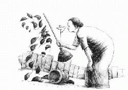 Saya mematikan sambungan telepon. Mata masih berat untuk sadar penuh, ngantuk memang kurang ajar masih menempel di seluruh badan. Meminta saya kembali ke tempat tidur. Saya malas sekali. Namun denging mimpi tentang kekacauan di perumahan saya masih terasa di kepala. Samar-samar bayangan mimpi itu masih ada di sana. Saat saya sikat gigi, denging mimpi itu perlahan lindap. Seperti noda pada baju yang dicuci, ia memudar, perlahan tapi pasti.