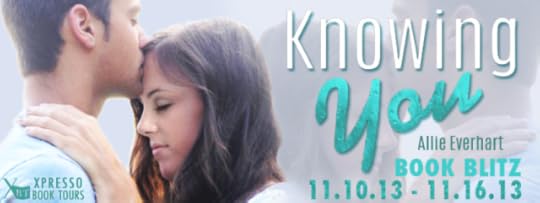 Knowing You by Allie Everhart (Jade #2) Publication date: November 2013Genres: Contemporary, New Adult, RomanceNow that Garret’s decided he’s no longer following the rules of his wealthy family, he can finally develop a closer relationship with Jade. Things are going well, but Jade still worries that being with Garret is only temporary. And because of that, she’s not sure how much of herself and her past she’s willing to let him see.