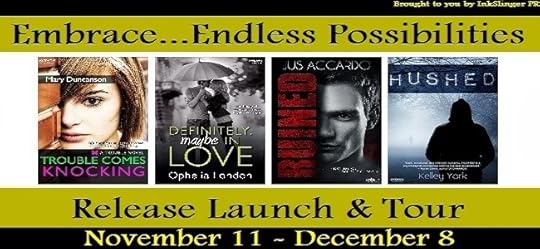 Hey guys. Today, I have a very special post for all of you introducing a new adult line from Entangled Press. The Embrace line is launching with four new titles, Trouble Comes Knocking, Definitely, Maybe in Love, Ruined and Hushed. For my tour post, I have the dream cast for Hushed by Kelley York.