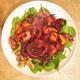 A few handfuls of arugula, frisée, or red mustard greens, carefully washed and dried