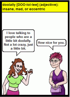 "Doolally" is a word from my book, The Word I'm Thinking Of: A Devilish Dictionary of Difficult Words, available here. TWITO is not a comic book; I'm just having some fun with stripcreator.com. The dialog, however, is from the book (slightly adapted).