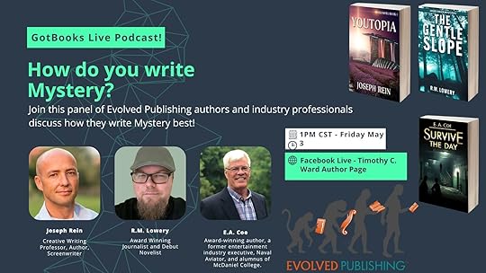 Timothy C. Ward, author of Godsknife: Revolt and fellow Evolved Publishing author has invited 3 authors to discuss how they use their writing strengths to produce great Mystery books! We have a wide variety of approaches...