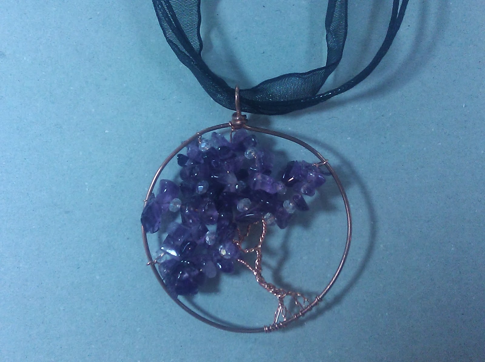Amethyst and copper Tree pendant. Donated by Rockpick Legend Co.