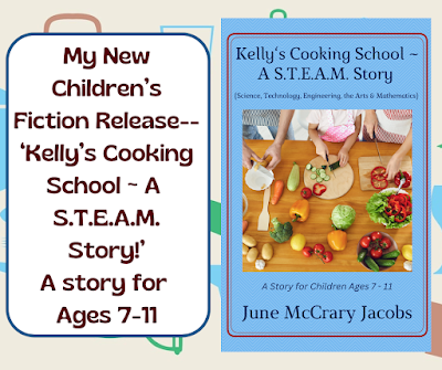 In 'Kelly's Cooking School ~ aS.T.E.A.M. Story' children will be introduced to the principles of geometrythrough a fictional story of a teen who presents a cooking lesson to 7-year-oldMia and 9-year-old Michael.