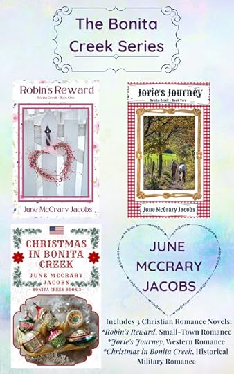 Connect with June by visiting authorjunemccraryjacobs.blogspot.com to follow her on social media or subscribe to email newsletter updates. {Buttons to find June on various platforms are in the right sidebar next to this post. Button to subscribe to her free email newsletter is at the top of the right sidebar immediately beneath the blog banner.}