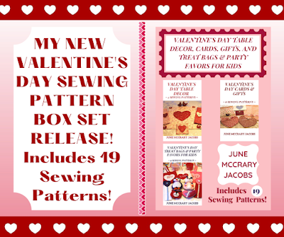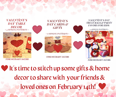 🪡🧵✂️ ~ 3 Valentine's Day sewing pattern ebooks filled with gifts, cards, and home decor = 19 sewing projects to stitch up for your friends and family for Valentine's Day!