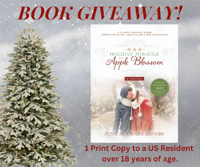 Enter to win a hardcover 'gift book' copy of my first novel, 'A Holiday Miracle in Apple Blossom.' This book is a Christian contemporary holiday romance which won Cedar Fort Publishing's 2013 Holiday Tale Contest. The giveaway is open until December 31st. The winner will receive the book in the mail sometime in January, 2023, directly from Cedar Fort Publishing. Giveaway courtesy of the publisher. This giveaway is my way of saying 'thank you' to all of my loyal readers and subscribers! a Rafflecopter giveaway 🌟🌟🌟 P.S. -- Leave a comment on this blog post to receive 3 bonus entries into the giveaway! 🌟🌟🌟 💝🎄💝🎄💝🎄💝🎄💝🎄💝🎄
