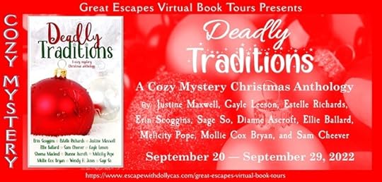 Deadly Traditions: A Cozy Mystery Christmas Anthologyby Justine Maxwell, Gayle Leeson, Estelle Richards, Erin Scoggins, Sage So, Dianne Ascroft, Ellie Ballard, Melicity Pope, Mollie Cox Bryan, and Sam Cheever🎄🍬🎁🎄🍬🎁🎄🍬🎁🎄🍬🎁