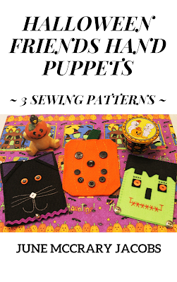 -- 'Halloween Friends Hand Puppets' includes 3 patterns to make cat, monster, and pumpkin felt hand puppets; and