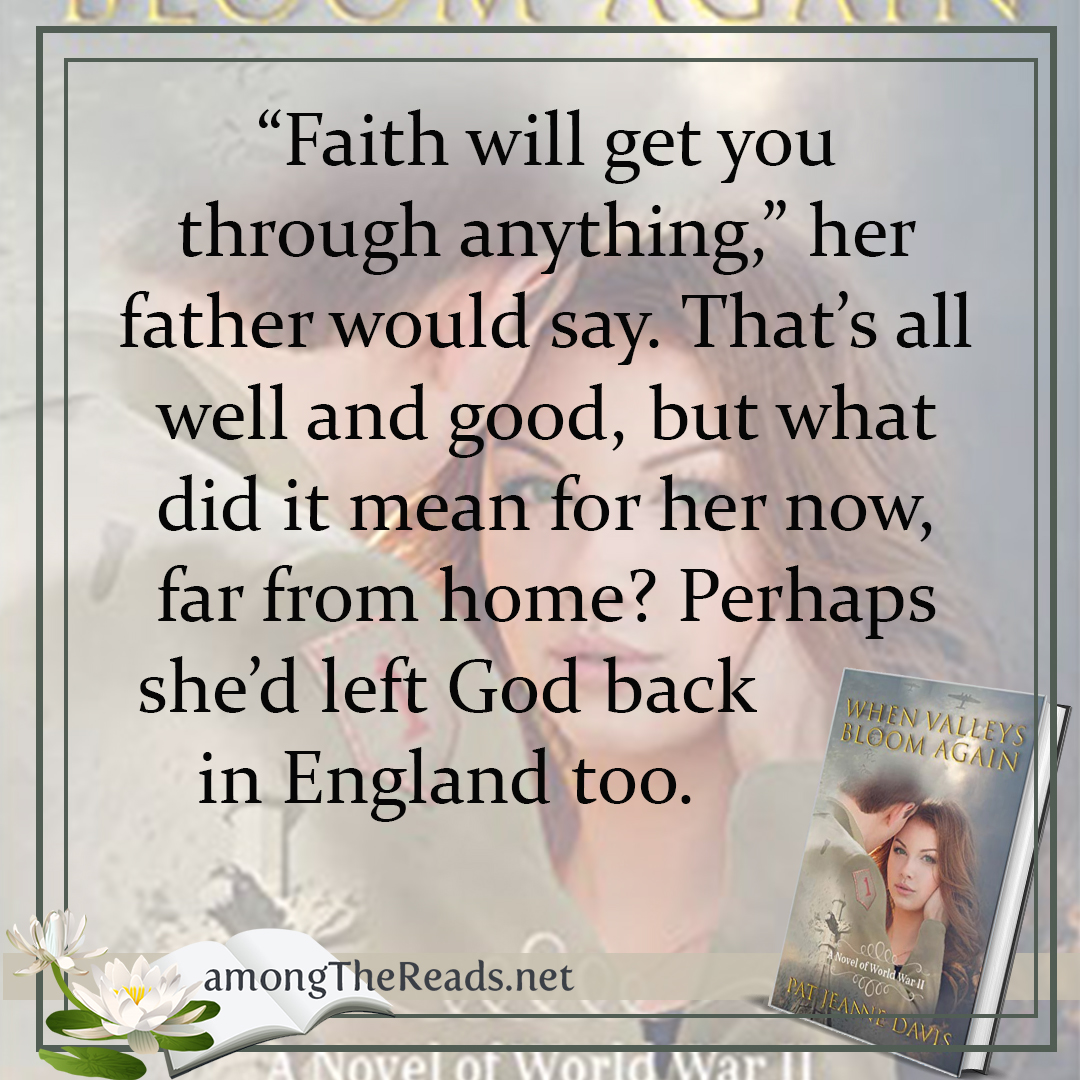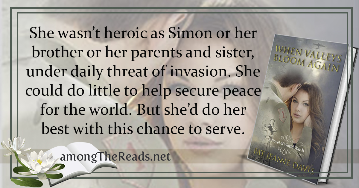 PAT JEANNE DAVIS has a keen interest in 20th Century United States and British history, particularly the period of World War II. Her longtime interest in that era goes back to the real-life stories she heard about family members who served during the war. When Valleys Bloom Again is a debut inspirational romance set in WWII. She enjoys flower gardening, genealogy research and traveling with her British-born husband. She writes from her home n Philadelphia, Pa. Pat has published essays, short stories and articles online and in print. She is a member of American Christian Fiction Writers.